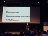Daten in Wert setzten und Datenbrüche reduzieren - Hannes Eugster, CEO der iNovitas, beleuchtete die Vision der digitalen „grenzübergreifenden“ Strasse. Mit Funktionen wie Project Cards können Nutzende künftig eigenständig Projekte starten und diese in virtuellen Räumen mit Stakeholdern teilen. Durch vorhandene Schnittstellen (API’s) soll die Zusammenarbeit über Systemgrenzen hinweg gefördert und Datenbrüche reduziert werden.