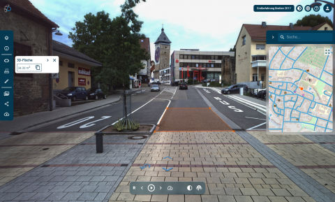 Die neu erfassten 3D-Bilddaten werden anschliessend in der bestehenden Softwarelösung infra3D Edit der Stadt Bretten integriert und abgebildet. Die Historisierung erlaubt den Vergleich und die Bearbeitung mit bereits bestehenden Daten aus früheren Kampagnen (2017). Eine Funktion, welche die infra3D-Nutzerinnen und -Nutzer vor allem als Entscheidungsbasis sehr schätzen.