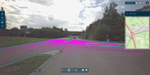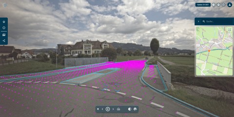 Im Auftrag des Kanton Zürich wurde das definierte Gelände bereits in beide Fahrtrichtungen digitalisiert. Für das Projekt konnte aufgrund der Digitalisierungsarbeiten auf der Südumfahrung in Dürnten auf bestehende Daten zurückgegriffen werden. Die relevanten Bilddaten wurden zusätzlich mit hoher Genauigkeit georeferenziert und in die infra3D Platform integriert. Dies ermöglichte der Terradata die Erstellung eines virtuellen Projektraums, der die Georeferenzierung der Bilddaten mit einer Genauigkeit von 1,5 cm (1σ) abbildet.