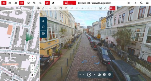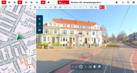 Das Landesamt GeoInformation Bremen verfolgt das Ziel, dass vorhandene Geodaten und Strassenbilder vielseitig und wertbringend in der gesamten Stadtverwaltung eingesetzt werden. Im Jahr 2019 hat die Stadt Bremen seinen digitalen Zwilling lanciert und entwickelt ihn seither laufend weiter. Im Rahmen dieses digitalen Zwillings sollen verschiedene bestehende Daten flexibel integriert und für eine breite Nutzung in der Verwaltung zugänglich gemacht werden.